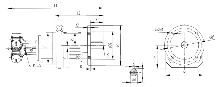 Faixa de taxa de redução: 3-103, potência: 0,56KW, potência: 0,75HP, torque: 24,5-704,5N.m, velocidade livre: 192-4RPM, consumo de ar: 0,504m³/min, peso: 11,8-42,5KG (diferentes taxas de redução , pesos diferentes), métodos de instalação opcionais: vertical, horizontal, válvula de controle manual opcional, freio, controlador.